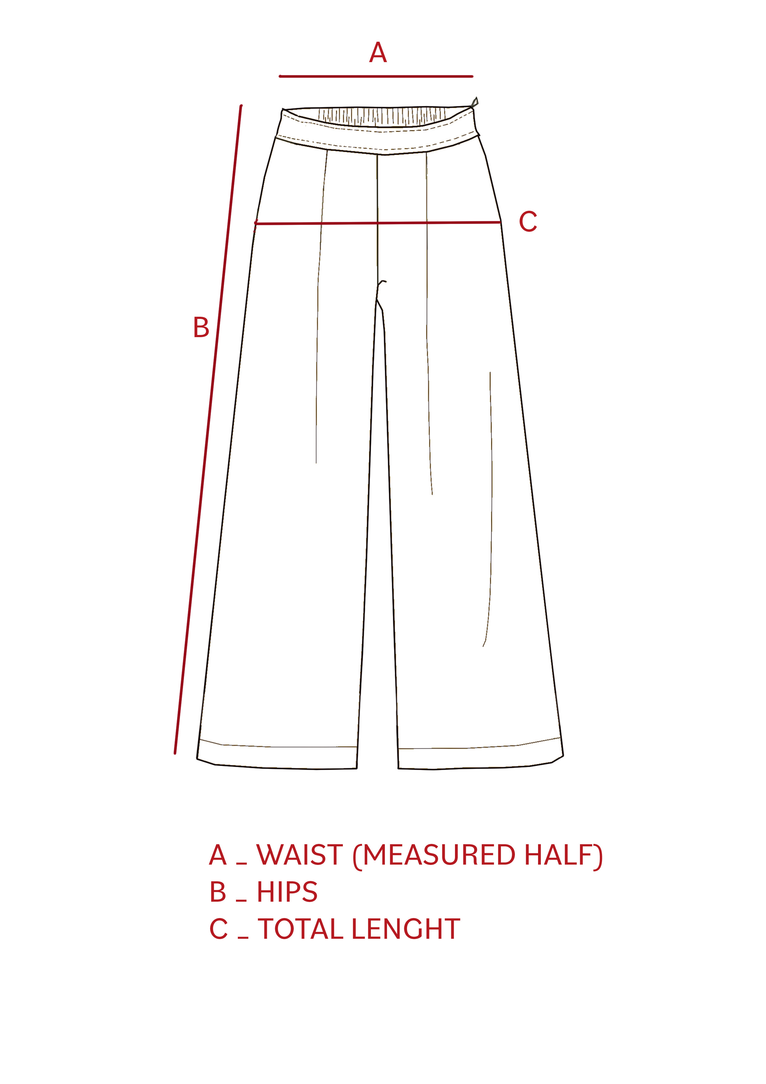 | Hips | 50 | 52.5 | 55 | 57,5 | 60 |