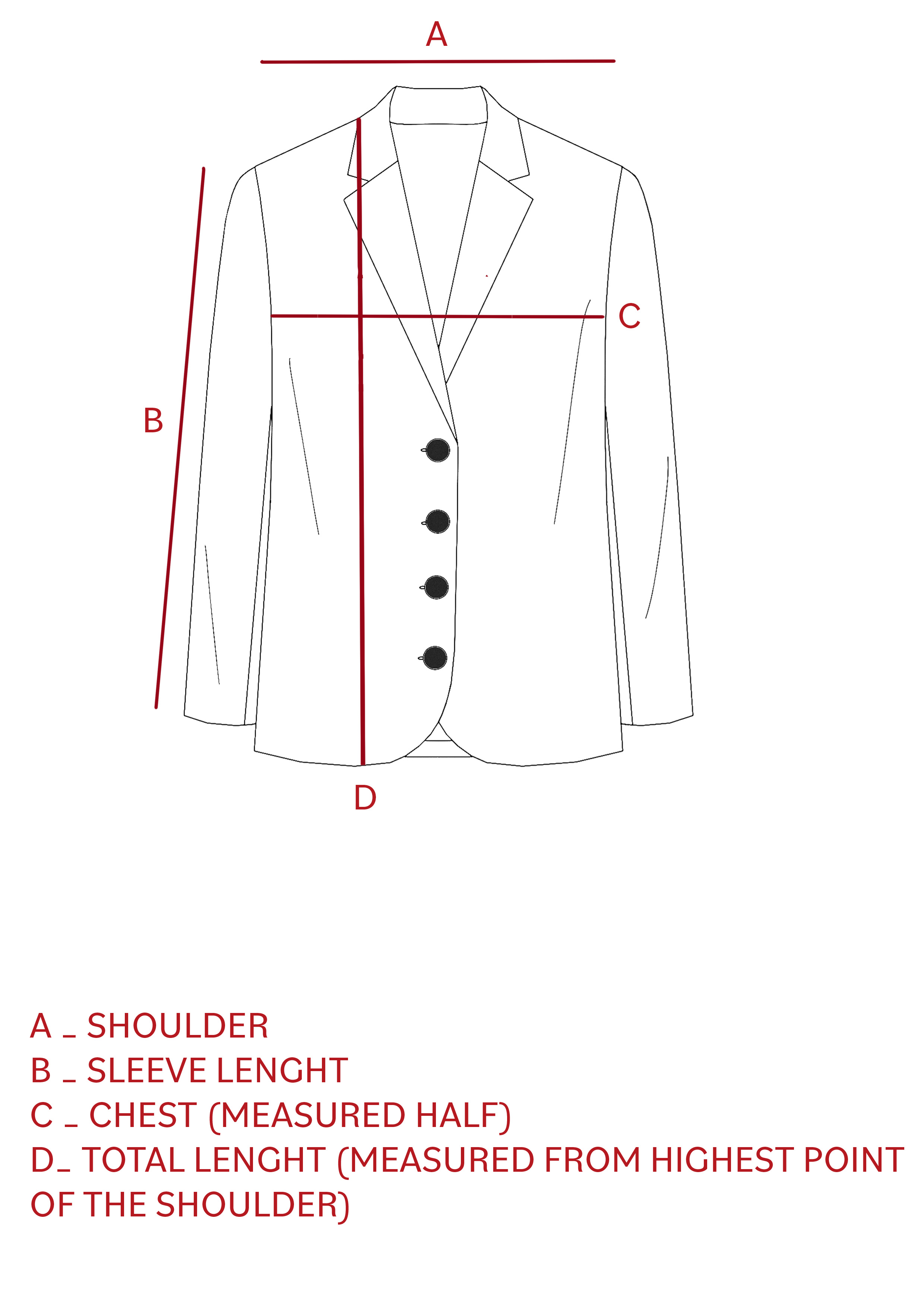 | Sleeve Length | 59 | 59.5 | 60.5 | 61.5 | 62.5 |