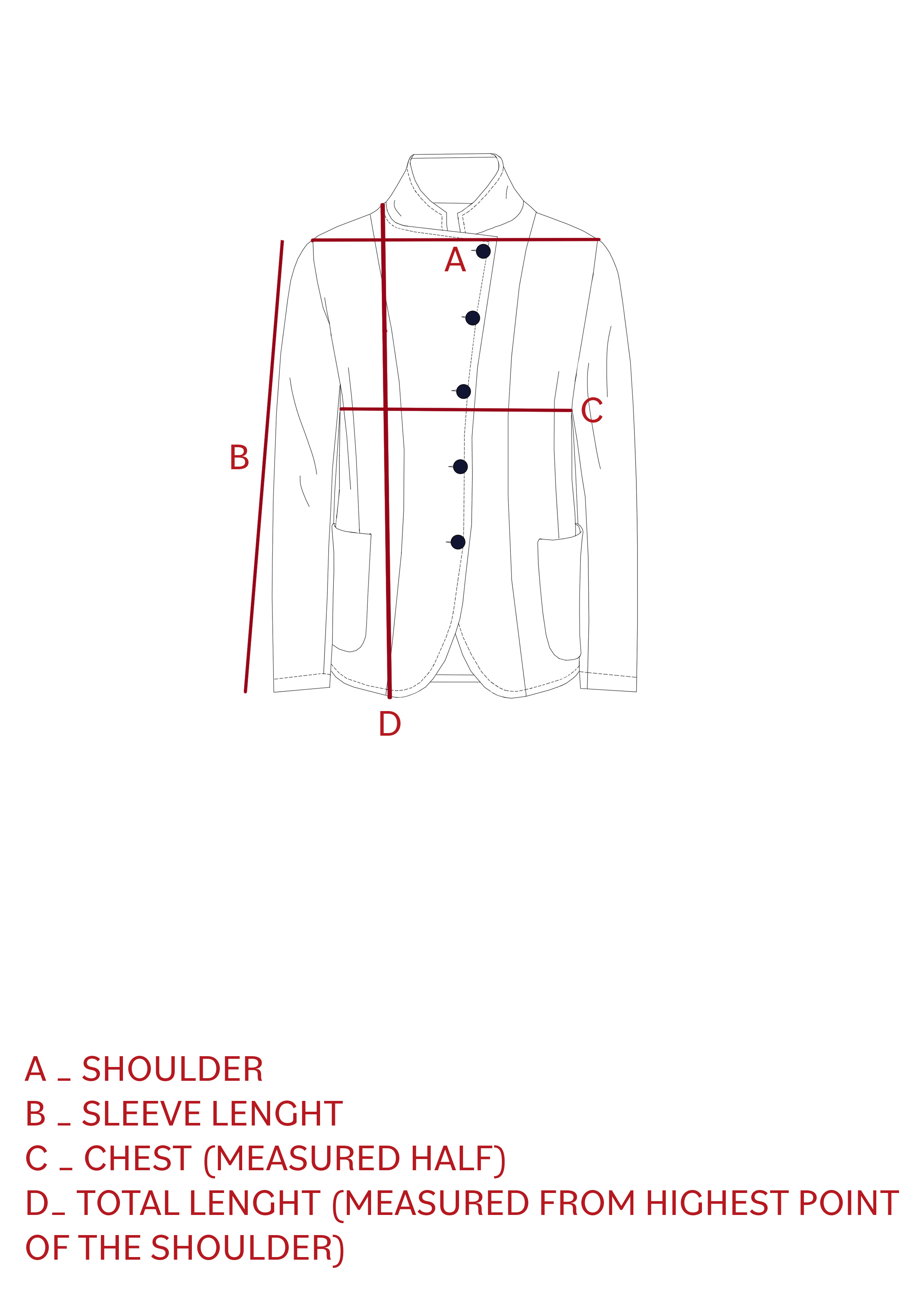 | Sleeve Length | 59 | 60 | 60.8 | 61.6 | 62.4 |