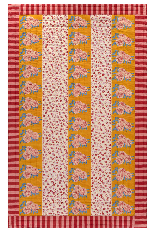 An exquisite symbol of leisure, each reversible quilt adds a vivid layer of patterned color to a bedroom, study or living room, changing sides to match the mood of the season. Paired with the maison's cushions or curtains, this size is perfect for a single bed or can be used as a throw on a day bed or chaise longue to create a cosy corner in any space.