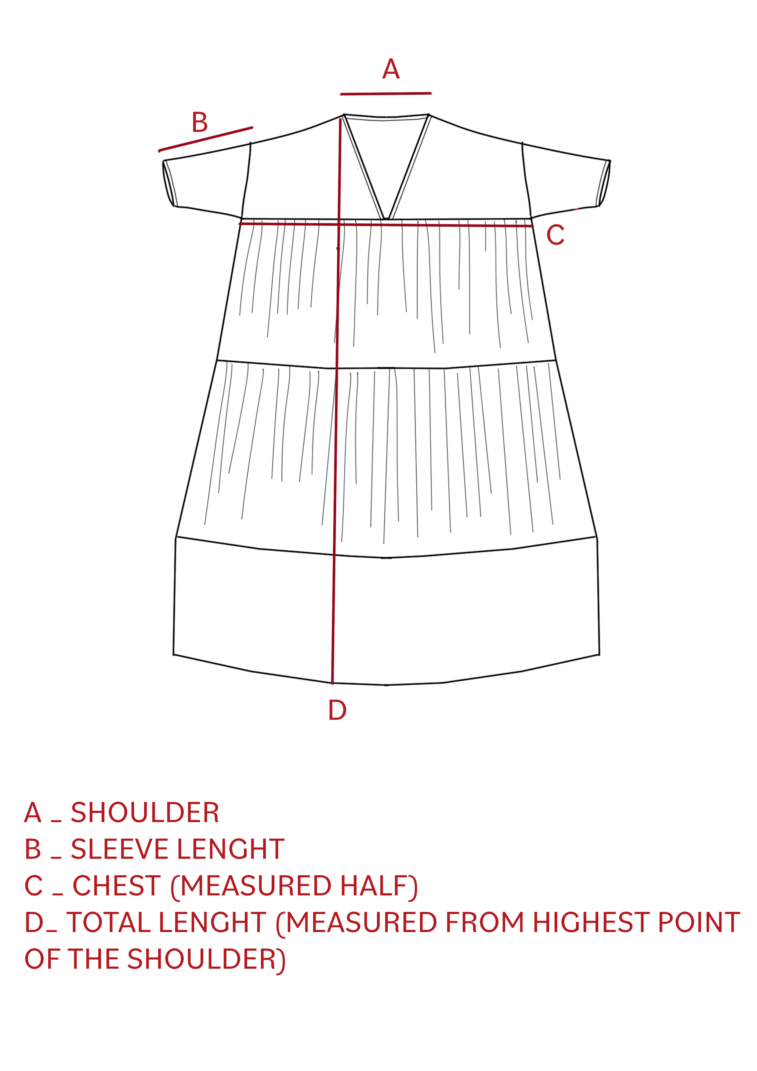 Crafted from seven metres of ultra-light viscose, the Scirocco Caftan offers a breezy, elongated silhouette with tiered gathering, soft volume sleeves and a reversible neckline that shifts easily between V and round shapes.
