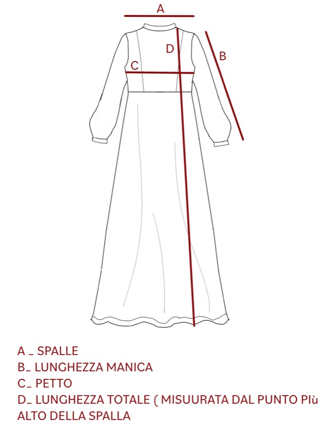 Lungo abito in chiffon di velluto in tinta unita con un raffinato piping sul corpetto. La gonna svasata ha un orlo a contrasto ripreso elegantemente dal bordo delle maniche a sbuffo e del colletto girocollo.