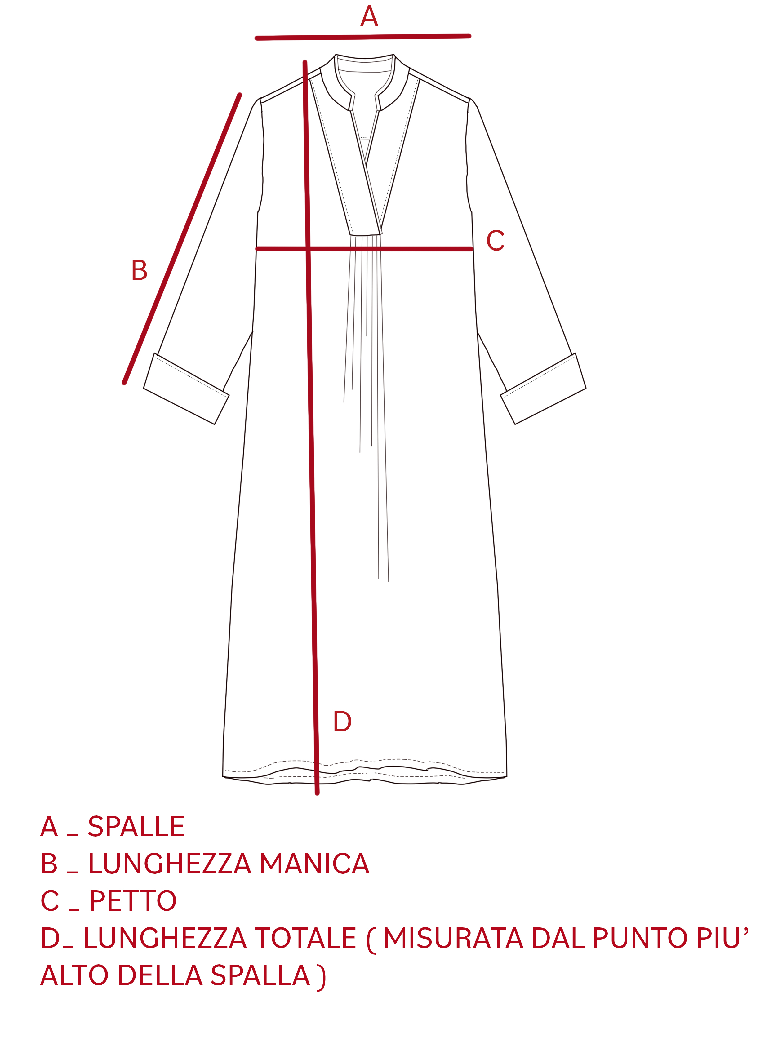 Il caftano è un capo iconico di Lisa Corti, emblema di un allure un po’ détaché grazie alla sua duttile vestibilità e al suo stile senza tempo. Di taglio morbido, è lungo fino alla caviglia e ha ampie maniche il cui risvolto richiama il bordo della scollatura.