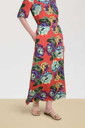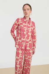 Il Dandelion è un fiore dell'archivio Lisa Corti, qui reinventato con inedite combinazioni cromatiche e dipinto manualmente in India con la tecnica a blocchi. Spontaneo e familiare, è valorizzato da uno sfondo a tinta unita fuxia, verde brillante o blu, che mette in risalto i suoi petali frastagliati e gli altri elementi arborei che lo accompagnano.