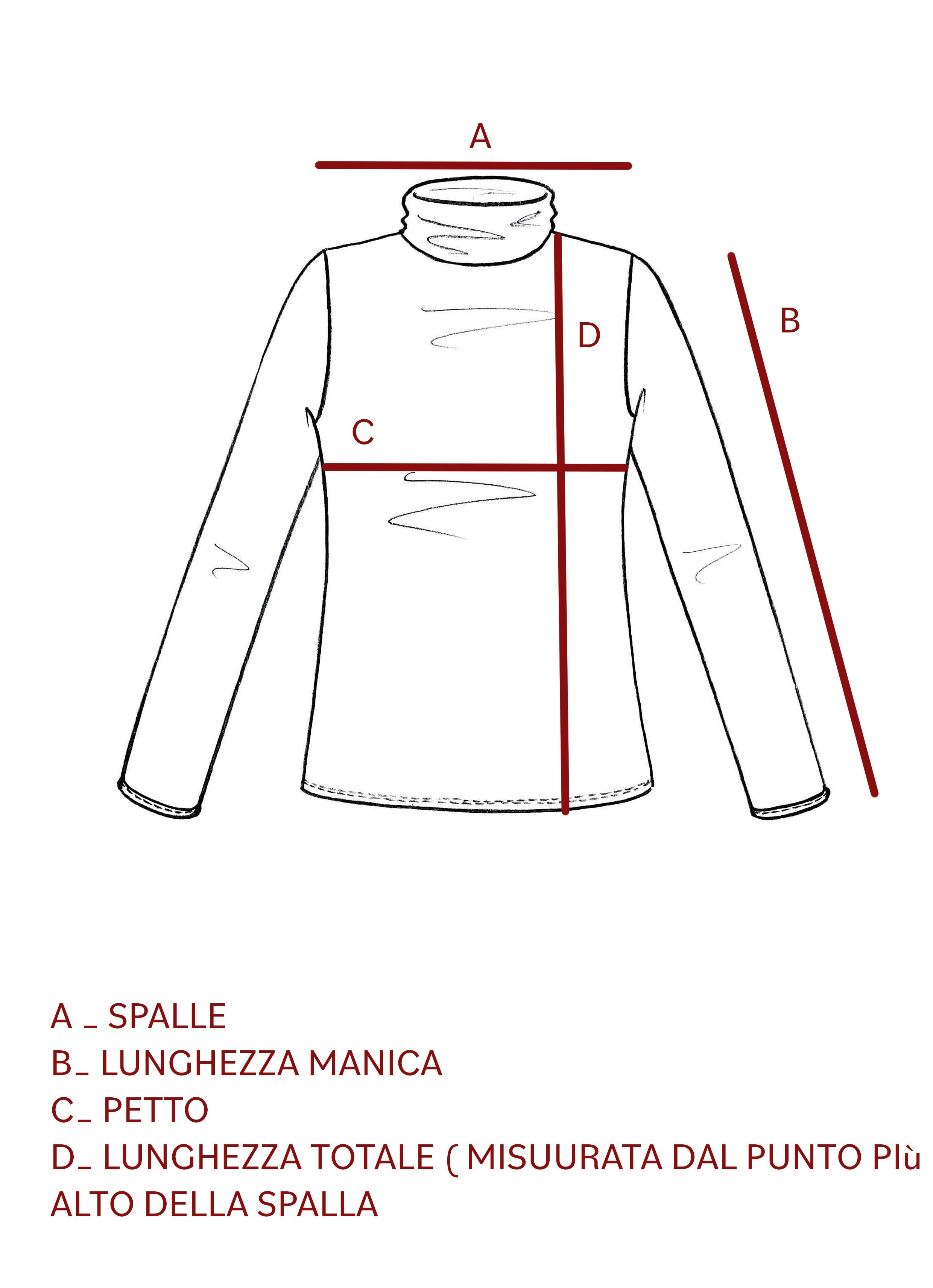 Lupetto in jersey di viscosa e lana. Caldo e sottile, grazie alla sua consistenza compatta non ha trasparenze e può essere utilizzato sia come caldo sottogiacca che come avvolgente top.