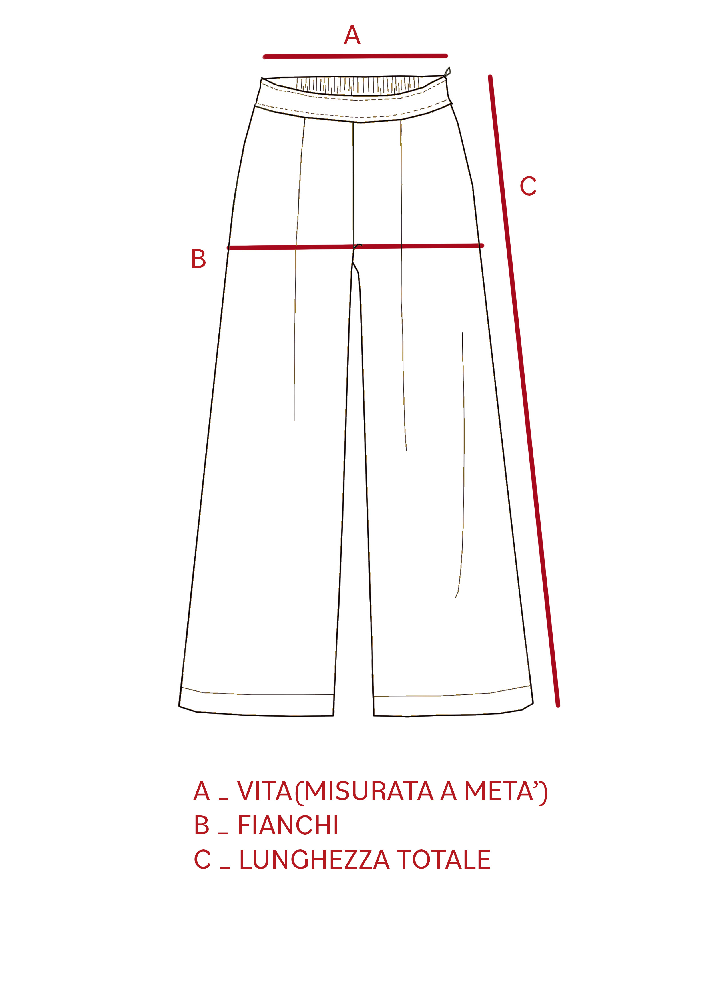 Morbidi pantaloni realizzati in Italia in crêpe di viscosa, fresca e leggera al tatto. Ormai un modello continuativo di collezione grazie alla loro vestibilità perfetta data dal taglio dritto, che scivola sul corpo senza costrizioni, e al cinturino piatto in vita dotato di un comodo elastico interno.