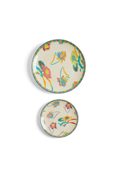 Set di piatti composto da un piatto piano e un piatto da dessert. Leggeri e resistenti, sono realizzati in raffinata porcellana cinese.