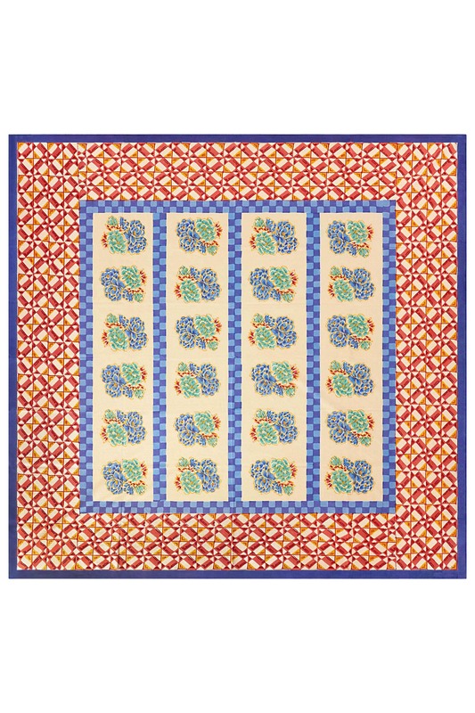 Il disegno è un omaggio alle tradizionali maioliche della costiera amalfitana e ai loro colori vivaci che qui fanno da cornice agli iconici fiori di Lisa Corti, dando forma a una stampa armonica e luminosa. Gli intrecci regolari, i motivi geometrici e gli elementi vegetali sono tutti realizzati a mano in India con tradizionali blocchi di legno, una tecnica artigianale che ne esalta l'unicità.