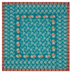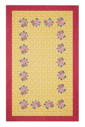In questa stampa si incontrano i toni dell'oro del disegno geometrico Arabesque, ispirato ad una miniatura indiana, e l'iconico fiore Corolla, nato da un mazzo di dalie rosse dipinte su una mattonella liberty.