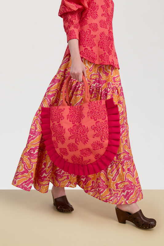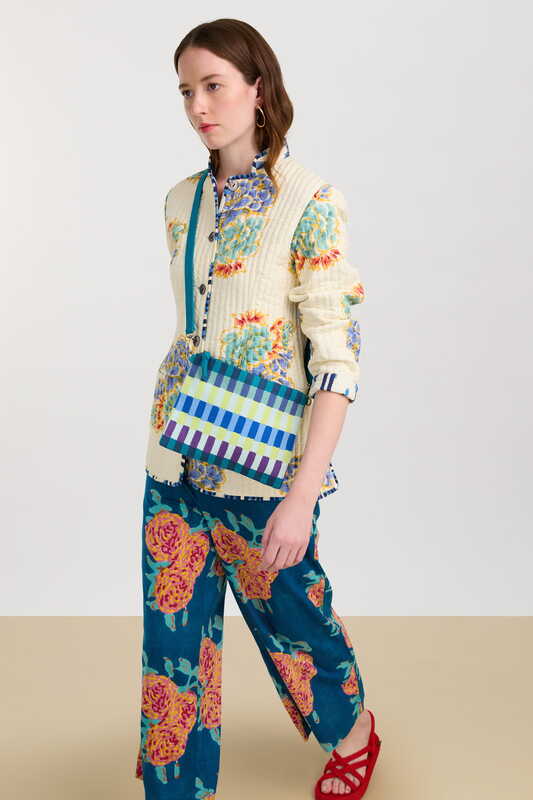 Per questa collezione Lisa Corti ha voluto sperimentare una nuova ed entusiasmante tecnica di stampa. Questa nuova tecnologia è infatti unica nel suo genere dato che il disegno viene creato a partire da un prototipo intagliato a mano e poi realizzato con la stampa a blocchi da maestri artigiani in India. Viene poi riprodotto su puro cotone in Italia con una pratica artigianale ma contemporanea che è il perfetto incontro fra tradizione e innovazione, da sempre alla base della ricerca di Lisa Corti.
